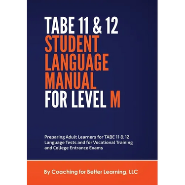 This TABE 11 & 12 Student Language Manual for Level M is designed to successfully prepare adult learners for the TABE 11 & 12 Level M language test and vocational training admission tests.
