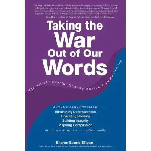 Whether we are dealing with a rude clerk, our child saying, "That's not fair ," our spouse ignoring us, or an uncooperative co-worker, in our struggle to respond effectively, we often become defensive - sometimes without even realizing it. Despite good intentions, we can become manipulative and controlling, even with those we love most. In this groundbreaking book, Sharon Ellison takes us to the root of our communication problems. She shows us how defensiveness functions in our lives and can lead to hurtful power struggles, outlining the six basic patterns we use: * Self-Betrayal * Avoidance * Excuses * Sabotage * Vindictiveness * Blame Using her Powerful, Non-Defensive Communication process, you can express yourself with a compelling blend of vulnerability and honesty. Learn to: * Ask disarming questions that prompt others to drop their defenses and open up * Give direct feedback to others without being judgmental * Express your own beliefs, feelings, and ideas passionately without being adversarial, so you can be heard and respected * Set firm boundaries that create security and clear expectations. "Taking the War Out of Our Words" provides us with vital tools for healing conflict, enhancing self-esteem, becoming more open and spontaneous, strengthening relationships, transforming organizations, and guiding the way toward peace in our global community.