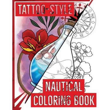 Tattoo art turned coloring book. Let your inner tattoo artist out on this nautical themed coloring book. Each page can be colored for fun, hung on the wall, or taken in to be tattooed. Who doesn't love to color, might as well color something fun From flying whales, pirate ships, to mermaids, there is plenty to keep you coming back for more coloring.