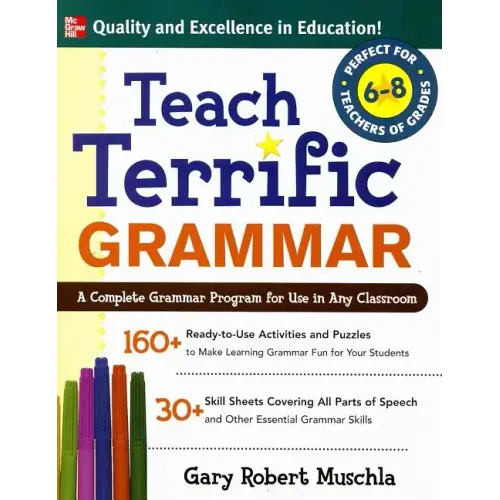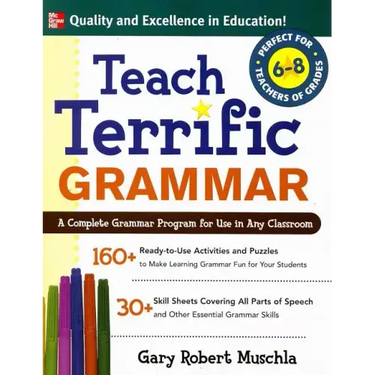 Teach Terrific Grammar, Grades 6-8 features more than 160 self-correcting grammar lessons in a fun puzzle format--complete with answer key--versatile enough to be adapted to any existing program or approach. It also has thirty reproducible "Tip Sheets" to share with your students that review the parts of speech and other important grammar rules so they can learn how to: