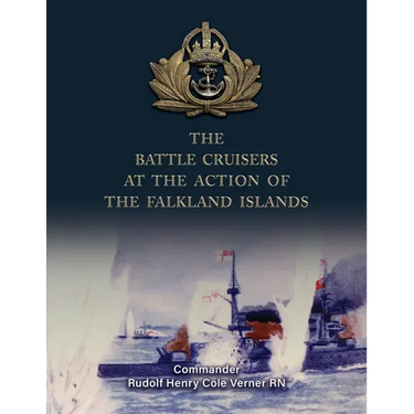 This title gives Commander Verner's narrative of the sinking of the Scharnhorst and Gneisenau in 1914, along with an account from the point of view of the cruiser Gneisenau - of the German Kaiserliche Marine - as described by its German officers. The second half of the book includes a detailed memoir that transcribes his diary of 1914 with operations in the Dardanelles in February and March 1915 up to when he was killed in action while Commander of HMS Inflexible, on 18th March, whilst directing the guns in the attack on the Dardanelles. This is all accompanied by five full-page colour plates showing annotated ship sketches by Commander Verner that depict the naval action between the British Royal Navy and the Imperial German Navy in the South Atlantic. Commander Verner is remembered on the Chatham Naval Memorial and the War Memorial at St. Mary's Church on the Elvetham Estate near Hartley Wintney in Hampshire.