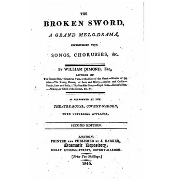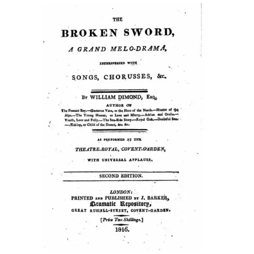 The Broken Sword, A Grand Melo-drama by William Dimond. This book is a reproduction of the original book published in 1816 and may have some imperfections such as marks or hand-written notes.