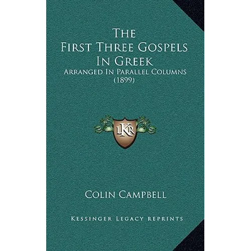 The First Three Gospels In Greek: Arranged In Parallel Columns is a book published in 1899 by Colin Campbell. It is a compilation of the first three Gospels of the New Testament, namely Matthew, Mark, and Luke, arranged in parallel columns in their original Greek language. The book is designed to facilitate the study and comparison of these three Gospels, which share many similarities but also have distinct differences in their accounts of the life and teachings of Jesus Christ. The parallel arrangement of the texts allows readers to easily compare and contrast the wording and structure of each Gospel, providing a deeper understanding of the nuances of the original Greek language. The book is intended for scholars, students, and anyone interested in the study of the New Testament and the life of Jesus Christ.This scarce antiquarian book is a facsimile reprint of the old original and may contain some imperfections such as library marks and notations. Because we believe this work is culturally important, we have made it available as part of our commitment for protecting, preserving, and promoting the world's literature in affordable, high quality, modern editions, that are true to their original work.