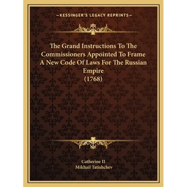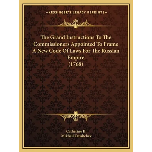 The Grand Instructions to the Commissioners Appointed to Frame a New Code of Laws for the Russian Empire is a book written by Catherine II, the Empress of Russia, in 1768. The book is a comprehensive guide for the commissioners who were tasked with creating a new set of laws for the Russian Empire. Catherine II was known for her interest in legal reform and her belief in the importance of a strong legal system for the stability and prosperity of a nation. The Grand Instructions reflects her commitment to this goal, as it outlines the principles and values that should guide the creation of a new legal code.The book covers a wide range of topics, including the rights and duties of citizens, property laws, criminal justice, and the organization of government. It emphasizes the importance of fairness, equality, and the rule of law, and encourages the commissioners to consider the needs and interests of all members of society in their work.The Grand Instructions is not only a guide for the commissioners, but also a statement of Catherine's own political philosophy. It reflects her belief in the power of enlightened governance and her commitment to modernizing and strengthening the Russian state.Overall, The Grand Instructions to the Commissioners Appointed to Frame a New Code of Laws for the Russian Empire is an important historical document that provides insight into the political and legal thinking of one of Russia's most influential leaders.This scarce antiquarian book is a facsimile reprint of the old original and may contain some imperfections such as library marks and notations. Because we believe this work is culturally important, we have made it available as part of our commitment for protecting, preserving, and promoting the world's literature in affordable, high quality, modern editions, that are true to their original work.