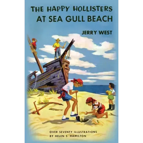 Looking forward to a visit at Sea Gull Beach, the Happy Hollister children have a wonderful time giving a play about pirates and American sailors. Then when they discover that a present they received from Uncle Russ, a lighthouse lamp, contains a real emerald, they are more eager than ever to get to Sea Gull Beach and find out where it came from. They have many exciting and new adventures during their search for the one hundred-year-old treasure which is buried with the MYSTERY ship. Pete, in an underwater outfit, visits the sea bottom, while Uncle Russ sketches cartoons of him from a glass-bottom boat. Pete enters his sea gull kite in the big Kite Contest. Holly and Sue are caught on a sandbar with an incoming tide and are rescued by their new friend, Rachel. In their search for the treasure an old tomb and a strange half-house are among the unusual clues that lead the Hollisters to the treasure. To the Happy Hollisters, every day brings new fun and adventures as they eagerly welcome new experiences and new friends. That is why the stories about this lovable family make exciting reading.
