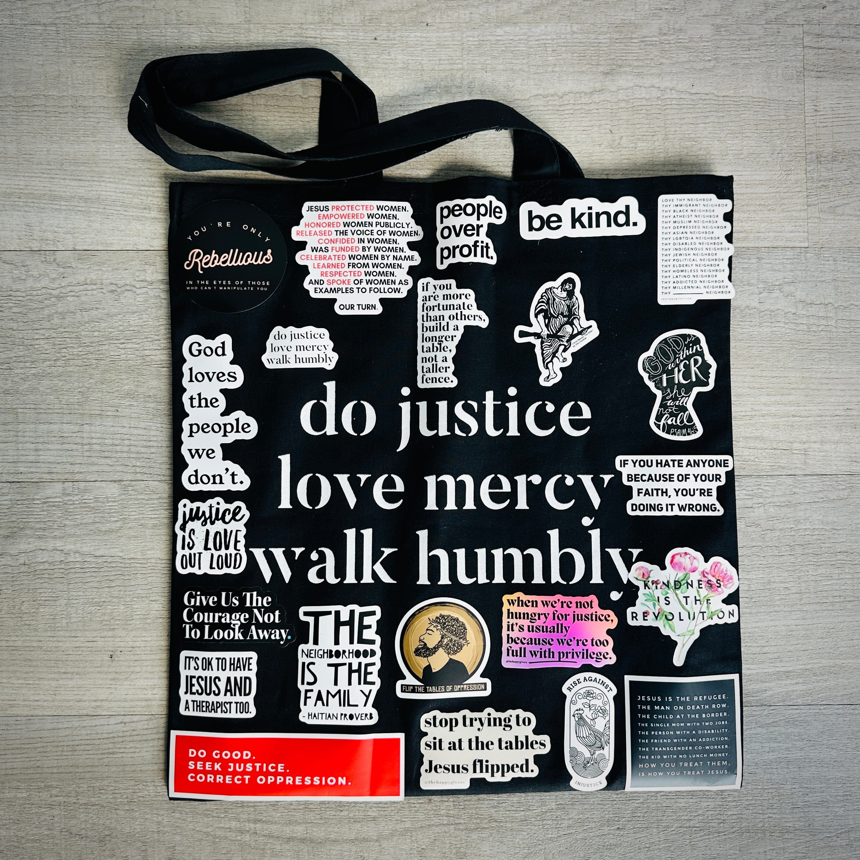 - The Tote / Sticker Bundle | 22 stickers and the Micah tote bag.