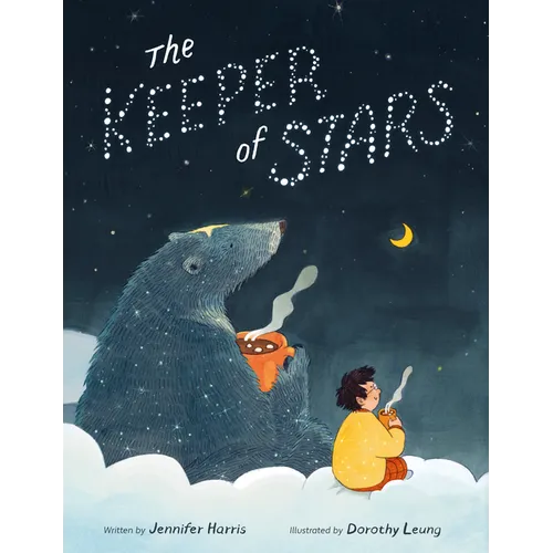 After a long day, the sky is a bit of a mess. Together, Milo and the Keeper of Stars gather up stray balloons and feathers, rinse and polish the stars (which would be easier if they weren't so ticklish!), and sometimes, the Keeper of Stars lets Milo play games with the baby stars. When everything is tidy, the two hard workers enjoy a cup of cocoa together and admire the millions of bright twinkles in the night sky before Milo heads back to his room and slides into bed, careful not to wake his mom.