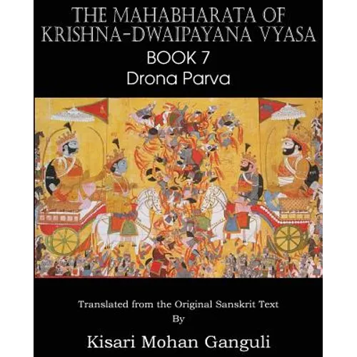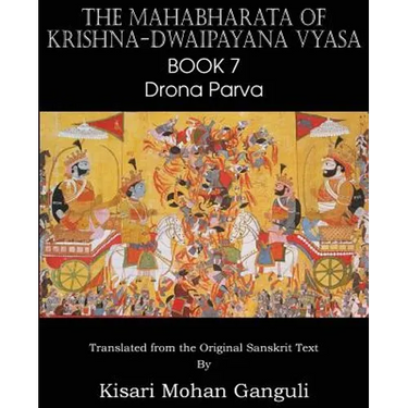 The Mahabharata is one of the two major Sanskrit epics of ancient India. It is an epic narrative of the Kurukshetra War and the fates of the Kauravas and the Pandava princes as well as containing philosophical and devotional material, such as a discussion of the four goals of life. Here we have Drona Parva, the seventh, is the major book of the Kurukshetra war with Drona as commander. The narration is on most of the great warriors who served on respectively to the Kauravas and the Pandavas in the battle. Drona or Dronacharya is portrayed as the royal guru to the Kauravas and the Pandavas. He was skilled in advanced military arts. Vyasa is a revered figure in Hindu traditions. He is a kala-Avatar or part-incarnation of God Vishnu. Vyasa is sometimes conflated by some Vaishnavas with Badarayana, the compiler of the Vedanta Sutras and considered to be one of the seven Chiranjivins. He is also the fourth member of the Rishi Parampara of the Advaita Guru Paramparā of which Adi Shankara is the chief proponent.