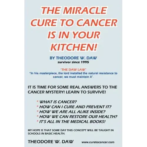 Why haven't I heard about this before? Maybe I can answer that. We have focused a lot of our hard earned taxpayer money and our attention and our faith from our hearts toward our trusted research team. But in fact they search mostly for drugs that can become commercially profitable. Our high tech labs "experiment with the unspeakable at a disgraceful cost". The Lord's "Masterpiece" need not be tampered with, only nurtured This book fits the pieces of the puzzle together for the real answers to the cancer mystery. The encyclopedias and health books will confirm, we should look not to the high-tech digital electronics in the laboratories for survival, but instead in our Kitchen