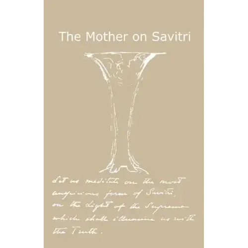 A Savitri Foundation Compilation Sri Aurobindo's epic Savitri running into about twenty-four thousand lines is not only a literary masterpiece; it is the supreme revelation of his vision, and a record of his yogic and spiritual attainments. It proclaims the future of man and prepares the necessary ground for the powers of the spirit to enter into his life. As an example, it speaks of the essential sound becoming the material sound, and it is that which can give rise to new expression. These are the possibilities, and these have been most forcefully and luminously brought out by the Mother. It is that gift of hers which we value most. Precisely it is the preciousness of it that we have attempted to put together in the present compilation. Every effort has been made to collect all the 'writings' of the Mother on Savitri, her avowals and pronouncements made on different occasions in different contexts. It is believed that this will form a constant source of inspiration to all the lovers of Savitri, that it will be a means for them to march on the spiritual path of progress, lead them to attainments which only Savitri can offer. If Savitri herself ascends to the vast realms of delight, brihat saubhagam, then surely it does open out a way for us all, those who wish to follow her path. The sketch on the cover of the book is by the Mother, which she has entitled The Descent of the Supreme Mother, indicating that she is here amongst us, and what we have to do is to keep ourselves ready to receive her, in her splendour and in her glory. There is no doubt that Sri Aurobindo's Savitri and the Mother's revelations bring that fulfilment to us. We can then always live in the Mantra the Rishi-Poet has given to us: Let us meditate on the most auspicious form of Savitri, on the Light of the Supreme which shall illumine us with the Truth. Savitri Foundation is happy that it can offer its soul for this realisation.