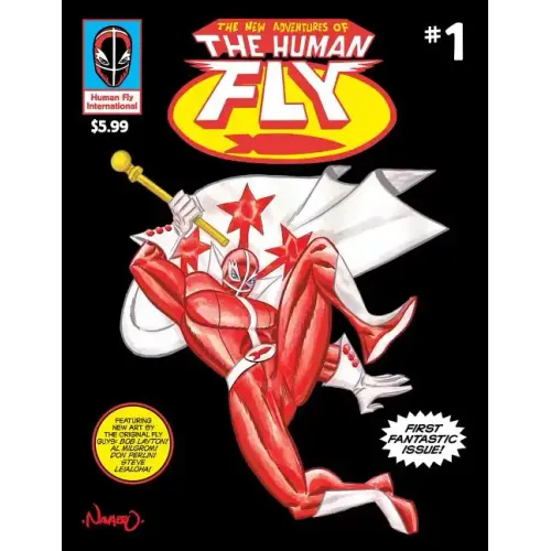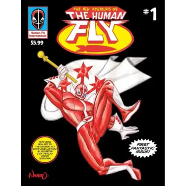 Brand new adventures of the Human Fly, based on the real-life stuntman, superhero and rock star extraordinaire, featuring artists Bob Layton ("The Invincible Iron Man"), Steve Leialoha ("Fables"), Don Perlin ("Werewolf by Night," co-creator of "Moon Knight") and Al Milgrom ("ROM: Spaceknight") from the Fly's original 1970s comic book series. Contributors also include iconic '70s/'80s artist Gerry Talaoc ("Unknown Soldier," "The Incredible Hulk"), Steven Butler ("Web of Spider-Man," "Sonic the Hedgehog"), hot alternative comic book creator Jim Rugg ("Afrodisiac"), legendary letterer Janice Chiang, Rafael Navarro ("Sonambulo," "Guns A Blazin'"), Javier Herandez ("El Muerto, Aztec Zombie"), screenwriter of the upcoming "Human Fly" movie Tony Babinski, Jason Baroody, Paul Mason and Kathryn Renta. Edited by and featuring the contributions of cartoonist Michael Aushenker (the "El Gato, Crime Mangler" series, "Cartoon Flophouse"). Among the stories in this first issue: "Lights, Camera, Die Fly Fie : " mayhem ensues when the Human Fly and his cronies try to film a children's television show. "Fly vs. Fly" While the Human Fly is performing in Mexico, he must go up against a serial killer who may be...the Human Fly? "Other Worlds, Other Dimensions" Dr. Syringe, a time-traveling super villain from the future, drags our hero into a nightmarish tech world where the Fly must rescue an attractive scientist from a slew of video game baddies. "Click" The Human Fly is on a mission to infiltrate a fortified compound...but what could possibly be worth risking life and limb against an evil paramilitary super-army? Fun from cover to cover, with front cover art by Rafael Navarro, Steve Butler and Janice Chiang, and painted back cover art by Michael Aushenker.