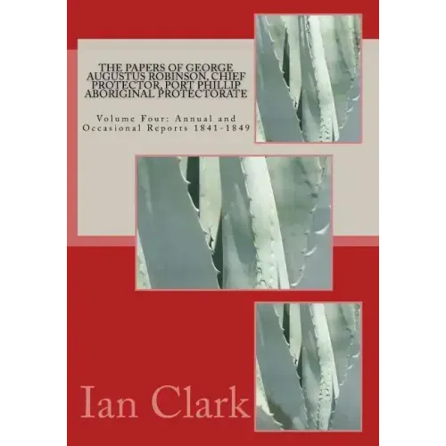 The Papers of George Augustus Robinson, Chief Protector, Port Phillip Aboriginal Protectorate, Volume Four: Annual and Occasional Reports, 1841-49 is a collection of Official Reports from the Chief Protector. CONTENTS Part One: Volume 59, Correspondence and Other Papers, Both Official and Private, Port Phillip Protectorate: Official Reports - 1841, 1845 A. Expedition to Western Interior, 1841 B. Journey of 1,100 miles to the tribes of the North West and Western Interior, 1845 Part Two: Volume 60, Correspondence and Other Papers, Both Official and Private, Port Phillip Protectorate: Official Reports - 1846, 1847 A. Report of an expedition to the Aboriginal tribes of the interior over more than ten thousand miles of country by George Augustus Robinson, March - August 1846 B. Report of a visit to the Goulburn, Loddon and Mount Rouse Aboriginal Stations by George Augustus Robinson, 1847 Part Three: Volume 61, Correspondence and Other Papers, Both Official and Private, Port Phillip Protectorate: Annual Reports of the Chief Protector, 1844 - 1849