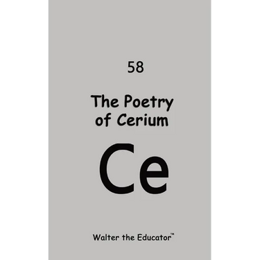 "Earning a degree in chemistry changed my life!" - Walter the Educator. This book is dedicated to all the chemistry lovers, like myself, across the world. The Poetry of Cerium belongs to the Chemical Element Poetry Book Series by Walter the Educator(TM). Collect all books in the series at WaltertheEducator.com. Creating a poetry book about the chemical element Cerium was a unique and intriguing endeavor. Cerium, with its atomic number 58, belongs to the lanthanide series and has various interesting properties. By exploring the characteristics and symbolism of Cerium through poetry, I can delve into themes such as transformation, resilience, and the beauty of imperfection. Additionally, this project can be an opportunity to merge science and art, bridging the gap between two seemingly different disciplines and inspiring a deeper appreciation for the wonders of the natural world.