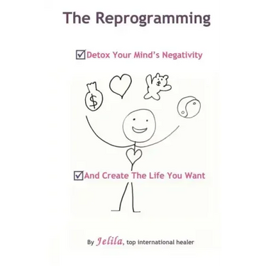 The Reprogramming(TM) is a simple way to detox your mind's negativity by releasing negative sub-conscious beliefs and permanently replacing them with new positive ideas.In this book, you learn how to make 'laundry lists' of negative ideas in various areas of your life - and cleanse them using a simple yet effective technique that everyone can use, to release negativity, and become more positive and hopeful.Be guided to discover a whole range of typical negative sub-conscious beliefs that many people have - and release the ones that relate to you - harmonising your life.The Reprogramming - detox your mind's negativity - & create the life you want Jelila, top international healer, was a consultant in project management and computing in London. She moved to Bali - got a whole new life perspective - and in the process, healed herself and discovered a new way of understanding the mind, how we think and feel - and harmonising it - developing an amazingly helpful new self-understanding concept, and transformation process, which everyone can understand and use."Easy to Understand" "Simple to Use" "Changed my Life " "Real Help for Stress " "Great " "Practical""A Must-Read" "Fascinating "Join at www.jelila.com for Spiritual Insider Updates including an Invitation to Jelila's Free 11 Minute Training Video demonstrating her technique of releasing negativity using The Reprogramming. your email is always private. http: //www.jelila.com