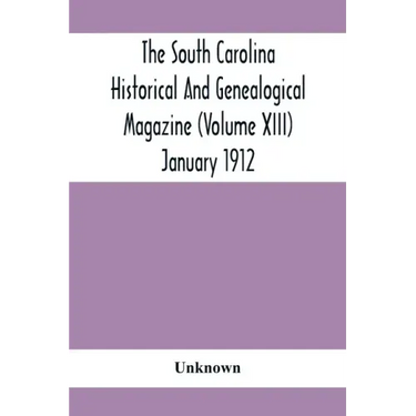 The South Carolina Historical And Genealogical Magazine (Volume Xiii) January 1912 - Paperback
