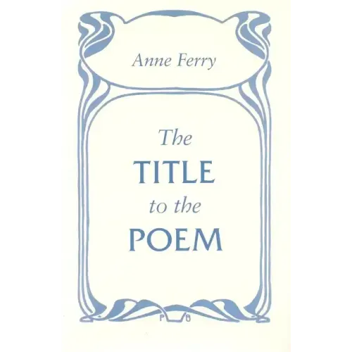 "There hasn't been an adequate history of the business of poetic titling until this new book by Ferry, and it is stimulating and welcome. . . .This is an indispensable hornbook. Anne Ferry has written the last word on the first words on any poem."--Partisan Review