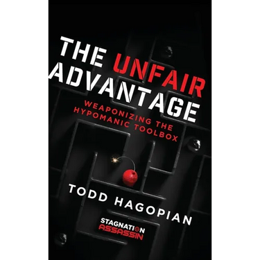 The Unfair Advantage: Weaponizing the Hypomanic Toolbox follows struggling manufacturing president Jack Whelan as he meets Eugene Spark, an eccentric bipolar billionaire who teaches him to weaponize hypomanic thinking patterns into systematic business transformation.