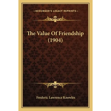 The Value of Friendship is a book written by Frederic Lawrence Knowles and published in 1904. The book explores the importance and significance of friendship in one's life. The author argues that friendship is a crucial aspect of human existence and that it brings joy, happiness, and fulfillment to our lives. The book contains several essays that discuss various aspects of friendship, such as its definition, its different forms, and the qualities that make a good friend. The author also examines the role of friendship in different contexts, such as in family relationships, romantic relationships, and professional relationships. Throughout the book, the author emphasizes the importance of cultivating and maintaining strong friendships, and provides practical advice on how to do so. The Value of Friendship is a timeless classic that continues to inspire readers to value and cherish their friendships.This scarce antiquarian book is a facsimile reprint of the old original and may contain some imperfections such as library marks and notations. Because we believe this work is culturally important, we have made it available as part of our commitment for protecting, preserving, and promoting the world's literature in affordable, high quality, modern editions, that are true to their original work.