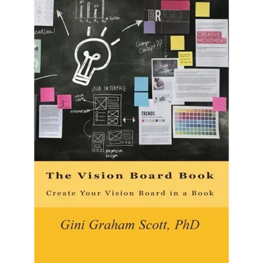 THE VISION BOARD BOOK provides a way to create your vision board in a book, in which you envision what you want and decide what action steps to take to get it. But instead of creating your vision on a large board, usually about 24"x36," you create it in an 8 1/2"x11" book.