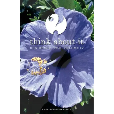 In each Think About It volume, Dr. Don Meyer has written about 50 essays which capture his insights on an assortment of topics which were published in his weekly column in the Phoenixville local paper since 2002 to the present. From butterflies to current events and from books to photography, there is hardly a topic that is off limits. Each book in the series will challenge you to think and by thinking you will be informed and inspired and blessed.
