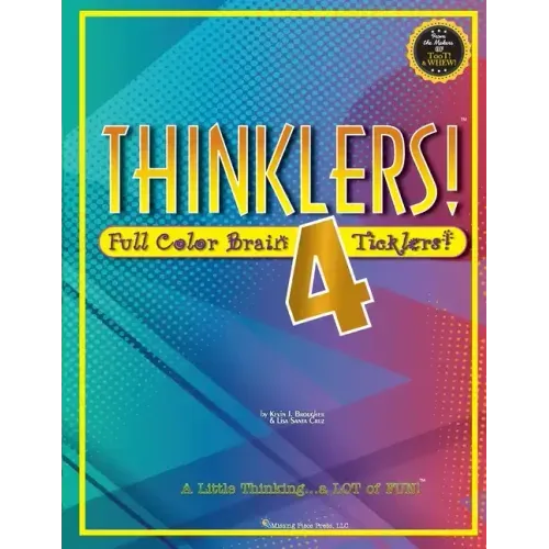 Following Thinklers 1, 2 & 3, Thinklers 4 brings in color to enhance the experience of thinking in creative and challenging ways. The three chapters: WHAT'S the WORD?, Rhyme Time Re-Do, and WHAT'S the PHRASE will keep young and old minds spinning for months