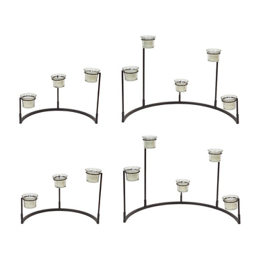 Enhance your home decor with this stunning set of Multi-Level Votive Candle Holder Stands. Crafted from durable black metal and glass, these tiered holders add warmth and charm to any space. Perfect as a dining table centerpiece, mantel display, or seasonal accent, this versatile set complements any style. Illuminate with real or LED candles to create a cozy, inviting ambiance, or add faux florals for a personalized touch. With their sturdy design and timeless appeal, these candle holders are perfect for year-round use. Candles sold separately. Sold in a set of four pieces with two assorted sizes to create a balanced display in your home.