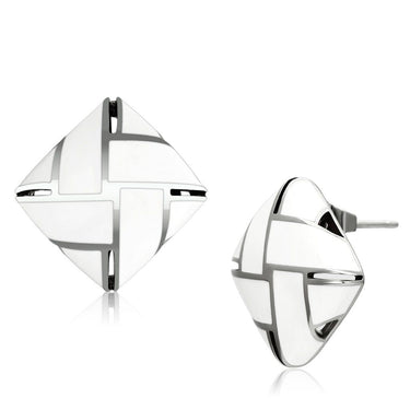 TK896 - High polished (no plating) Stainless Steel Earrings with Epoxy in White