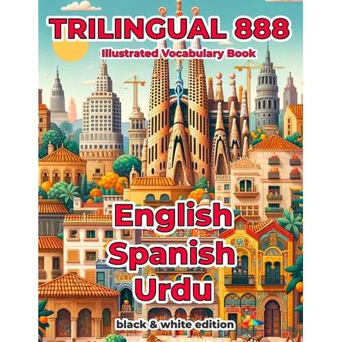 Prepare to be captivated by the mesmerizing blend of words and images as you explore 888 carefully chosen vocabulary words. Each page is a gateway to a world of discovery, where charming illustrations breathe life into everyday scenarios - from bustling markets to serene landscapes, and from enchanting stories to the marvels of nature. This trilingual vocabulary book is more than just a learning tool - it's an immersive experience. The captivating visuals effortlessly guide readers across language barriers, making the process of learning words in multiple languages an exciting and engaging journey. With clear and concise word labels in English, Spanish and Urdu, this book offers a seamless way to expand your vocabulary while reveling in the joy of language acquisition. Whether you're a language enthusiast, a curious learner, or a parent eager to introduce your child to the wonders of trilingualism, this book is an invaluable resource. Uncover the beauty of language diversity, foster a deeper understanding of different cultures, and embark on a trilingual quest that will leave you enriched and enlightened. The "Trilingual 888 English Spanish Urdu Illustrated Vocabulary Book" is a testament to the joy of learning, and a must-have addition to any language lover's collection. Product Details: * 888 Trilingual basic words with pictures.* A total of 2,664 basic words (888 x 3).