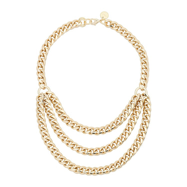 The Triple Layer Curb Chain Necklace is made from rounded recycled brass Cuban link chain. Finishes Available: 14k GOLD or Rhodium-Silver