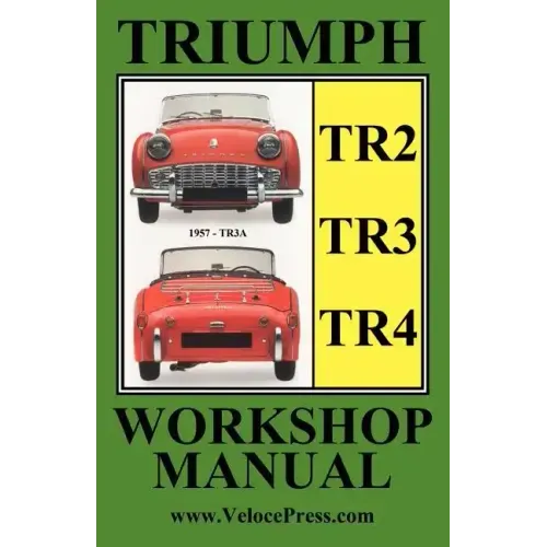 An illustrated Owner's Workshop Manual for the TR2, TR3 & TR4 series of Triumph sports cars built between 1953 and 1965. This is a faithful reproduction of the Floyd Clymer Triumph Owners Handbook of Maintenance & Repair originally published in the US circa 1969. This manual includes complete technical data, service and maintenance information and detailed instructions for the repair and overhaul of all the major mechanical and electrical components including: Engine, Fuel System, Cooling System, Clutch, Gearbox, Propeller Shaft, Rear Axle, Front Suspension & Steering, Springs & Shock Absorbers, Wheels & Tires and Brake system. There is detailed information on the Electrical System and its component parts and a comprehensive tuning section and complete technical specifications. For the later series of TR4's there is an appendix that details the set up and adjustment of Stromberg carburetors. There is adequate detailed text and diagrams to assist in major refurbishing such as an engine rebuild or even a complete mechanical renovation, making it an invaluable resource for collectors and restorers of these classic Triumph sports cars.