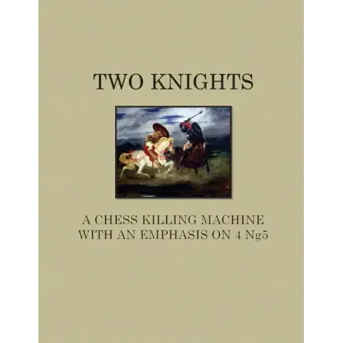 Would you like some thoughts from a Top rated correspondence player? The sharpness and imbalance of the Two Knights is quite challenging, and in my opinion - makes this an ideal opening for a fun game of chess This book has analysis for over 500 high-level games with coverage on every known viable defense to this series of gambits. It covers all branches of the Two Knights after 4 Ng5 with an emphasis on 8 Qf3 to also include a section on the Old Twist of 8 Bd3, suggestions for Black to handle the Old Reliable 8 Be2 lines, the Knight Flops Back 7...Nxc6, Bishop on Bishop 6...Bd7, the Lolli Attack, Berliner Gambit, Traxler Gambit, and explanations as to why other 4th moves are not so wise. Creativity is the hallmark of the Two Knights. But creativity also needs focus, as Mark Twain states, "You cannot depend on your judgment when your imagination is out of focus." Good chess is the culmination of intricate ideas. There are numerous good ideas in this manuscript from many sources to include several creative and new ideas from the author. This is not a casual treatise on the Two Knights. It encompasses several years of research and analysis. The Two Knights is a killing machine with many creative ideas. It strongly provides each side opportunities to score a point. There have been many ideas tried, and each one is examined. As shown, some ideas are overly creative, but not all. There are deep hidden traps and surprises To my children, and all chess players who dare to be bold - this is a legacy I desire to impart, enjoy life, enjoy chess, reach for the heights, flame the spark within your heart, and God willing, play a brilliant blazing game of life that you can cherish and share with others The author is a correspondence chess player with a peak rating of 2243, and consistently ranked in the Top 100 in US Correspondence Chess.