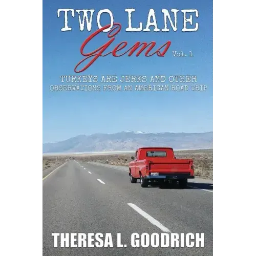 Two Lane Gems, Vol. 1: Turkeys are jerks and other observations from an American Road Trip is a road trip romp from the Chicago area to San Diego and back. Theresa Goodrich grabs her laptop, her camera, and her journal and makes (asks, she means, asks) her husband, Jim, to drive 6,479.5 miles through thirteen states so she can fulfill a childhood dream.