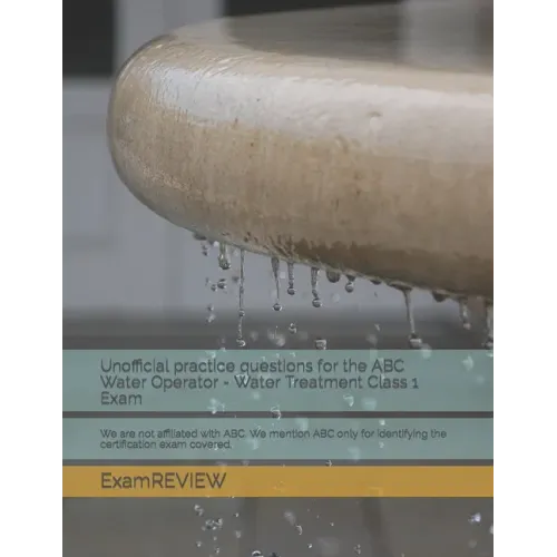 The Association of Boards of Certification ABC offers certification exams to operators in water treatment, distribution, very small water systems, wastewater treatment, collection, and industrial waste. This book covers the Water Treatment Class 1 exam. We are not affiliated with ABC. We mention ABC only for identifying the certification exam covered.