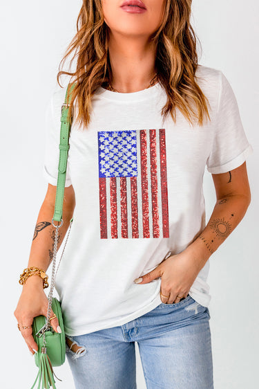 US Flag Round Neck Short Sleeve T-Shirt