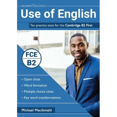 It comprises ten Use of English tests, 40 texts, 300 individual assessments with answer keys, write-in answer sheets and a marking scheme, providing a large bank of high-quality practice material for students preparing for the Cambridge B2 First.