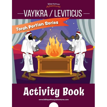 10 Torah Portion units in print format (8.5" x 11"), including Vayikra, Tzav, Shemini, Tazria, Metzora, Acharei Mot, Kedoshim, Emor, Behar, and BechukotaiVayikra Weekly Torah Portion study guideA Hebrew Alphabet chart in print format (8.5" x 11")Detailed scripture references for easy Bible verse look-upOriginal Bible Pathway Adventures' illustrationsAnswer key for parents and teachers