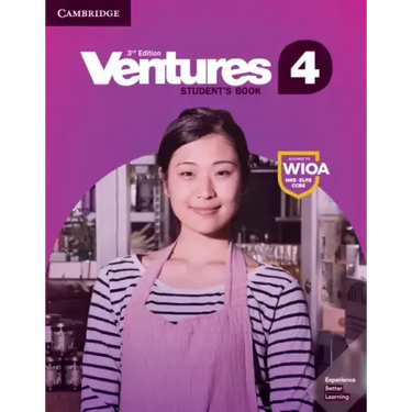 Ventures 3rd Edition Level 4 Student's Book has 10 units with six lessons each, based on relevant adult-learner themes. Two-page lessons are designed for an hour of classroom instruction and are aligned to teach students the skills needed for success in college and careers. Culture notes, speaking, reading, and writing tips enrich and support exercises. Review Units include sections focusing on pronunciation. A College and Careers section in the back of the book addresses needs for more reading practice. Students can access audio and grammar presentation videos using the QR codes found throughout the book.