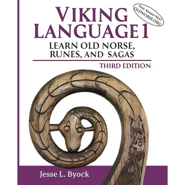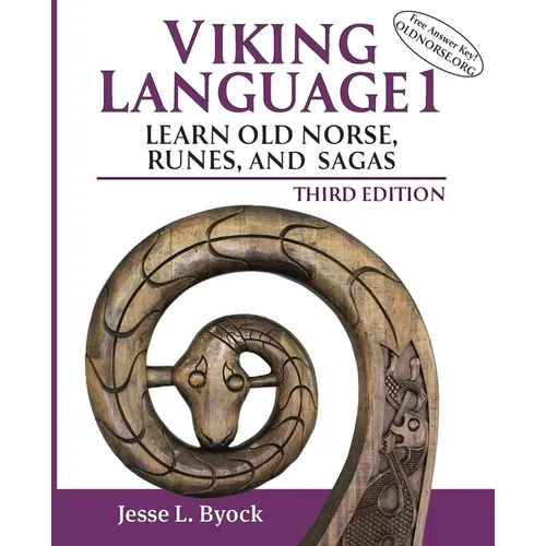 Viking Language 1, Third Edition is a new method for teaching Old Norse, the language of the Vikings and their runes. This innovative new book takes the reader on a journey through Viking Age Denmark, Iceland, Greenland, Norway, Sweden, and the Baltic lands. From page one, you will read original Old Norse passages about Vikings, Norse mythology, sacral kingship, blood feuds, and daily life. With maps and sections on Viking history, sagas, myths, and runic inscriptions, the reader quickly learns from original Icelandic sagas and runes, the latter from Denmark, Norway, and Sweden. A new and innovative word-frequency method eases learning and speeds comprehension. Download MP3 pronunciation albums on the website oldnorse.or as well as answer keys to the exercises in the lessons. Learn two languages at once: Because the grammar of Modern Icelandic has changed little from Old Norse, the learner is well on the way to mastering the modern language as well as the Old Norse of Vikings and runes. One reviewer writes: "Jesse Byock brings learning Old Norse into the 21st century. Reading passages are relatively short and progressively graded, and vocabulary building is chosen to give the reader the most common words to be found in the Old Norse sagas. www.oldnorse.org