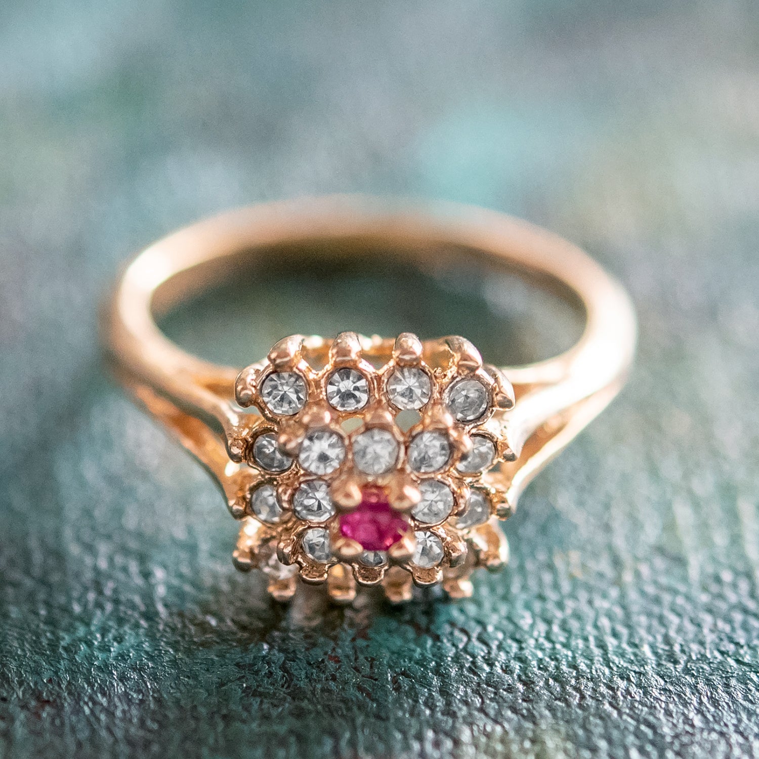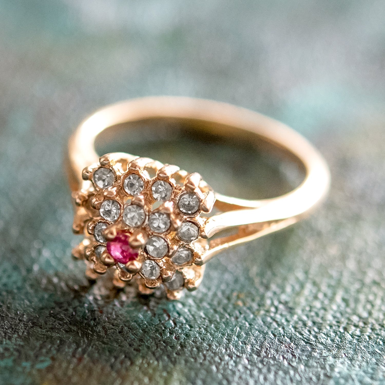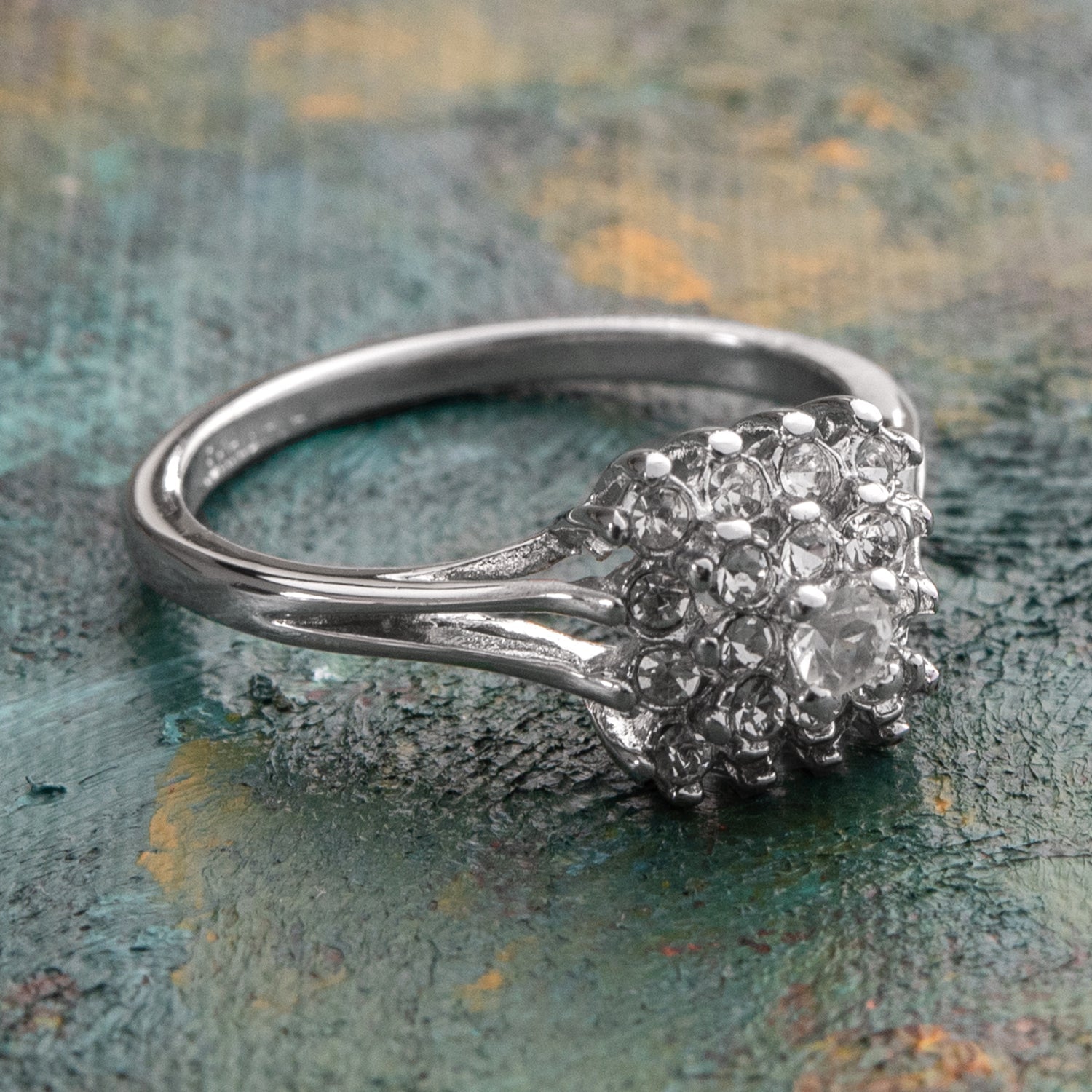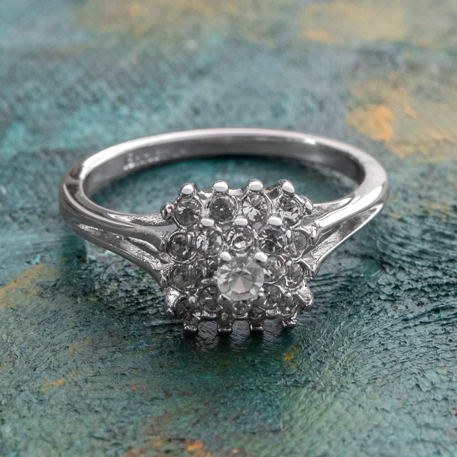 Vintage Clear Austrian Crystal Burst Ring 18kt White Gold Electroplated Made in USA by PVD Vintage Jewelry