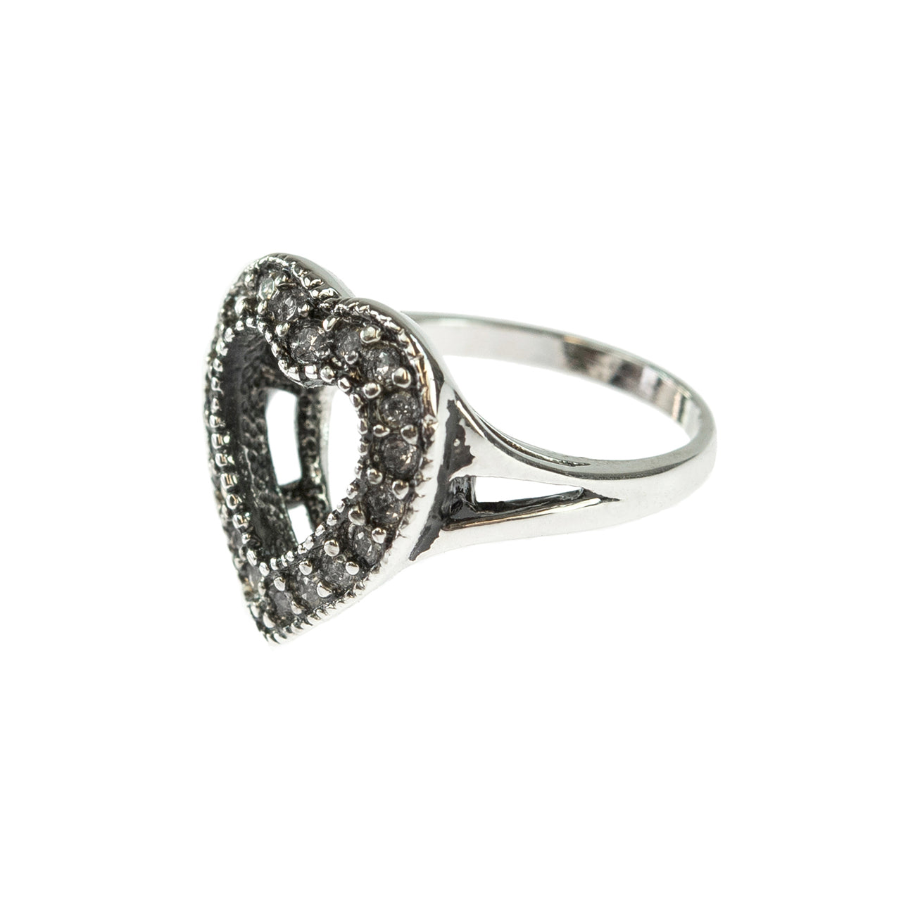 Vintage Clear Austrian Crystal Heart Ring Antiqued 18k White Gold Electroplated Made in USA by PVD Vintage Jewelry
