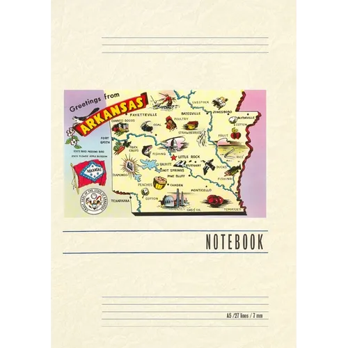 Introducing the Vintage Notebook: Greetings from Arkansas, a delightful companion for all your writing endeavors. Featuring 150 lined pages, immerse yourself in the charm of a classic vintage travel postcard illustration adorning its cover. With its full-color decorative vintage art and versatile functionality, this notebook is an ideal companion for journaling, planning trips, tackling writing projects, organizing to-do lists, or simply capturing thoughts on any occasion. Found Image Press Vintage Journals take you on a nostalgic journey, featuring carefully curated vintage art that celebrates your favorite places, hobbies, and interests. The front cover showcases a captivating classic piece of art sourced from our vast collection of over 60,000 pictures, meticulously selected to transport you to a bygone era. Immerse yourself in the allure of the past and thoughtfully crafted to inspire and accompany your creative ventures. Details: A5 5.8 x 8.2 inches; 150 lined opaque pages; Soft matte finish; Soft matte finish