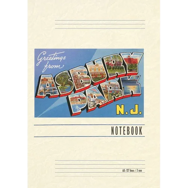 Introducing the Vintage Notebook: Greetings from Asbury Park, New Jersey, a delightful companion for all your writing endeavors. Featuring 150 lined pages, immerse yourself in the charm of a classic vintage travel postcard illustration adorning its cover. With its full-color decorative vintage art and versatile functionality, this notebook is an ideal companion for journaling, planning trips, tackling writing projects, organizing to-do lists, or simply capturing thoughts on any occasion. Found Image Press Vintage Journals take you on a nostalgic journey, featuring carefully curated vintage art that celebrates your favorite places, hobbies, and interests. The front cover showcases a captivating classic piece of art sourced from our vast collection of over 60,000 pictures, meticulously selected to transport you to a bygone era. Immerse yourself in the allure of the past and thoughtfully crafted to inspire and accompany your creative ventures. Details: A5 5.8 x 8.2 inches; 150 lined opaque pages; Soft matte finish; Soft matte finish
