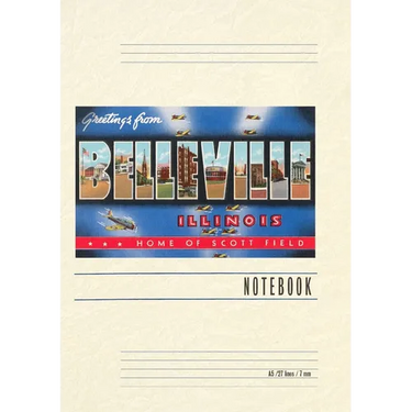 Introducing the Vintage Notebook: Greetings from Belleville, Illinois, a delightful companion for all your writing endeavors. Featuring 150 lined pages, immerse yourself in the charm of a classic vintage travel postcard illustration adorning its cover. With its full-color decorative vintage art and versatile functionality, this notebook is an ideal companion for journaling, planning trips, tackling writing projects, organizing to-do lists, or simply capturing thoughts on any occasion. Found Image Press Vintage Journals take you on a nostalgic journey, featuring carefully curated vintage art that celebrates your favorite places, hobbies, and interests. The front cover showcases a captivating classic piece of art sourced from our vast collection of over 60,000 pictures, meticulously selected to transport you to a bygone era. Immerse yourself in the allure of the past and thoughtfully crafted to inspire and accompany your creative ventures. Details: A5 5.8 x 8.2 inches; 150 lined opaque pages; Soft matte finish; Soft matte finish