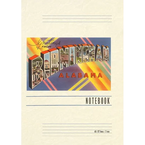 Introducing the Vintage Notebook: Greetings from Birmingham, a delightful companion for all your writing endeavors. Featuring 150 lined pages, immerse yourself in the charm of a classic vintage travel postcard illustration adorning its cover. With its full-color decorative vintage art and versatile functionality, this notebook is an ideal companion for journaling, planning trips, tackling writing projects, organizing to-do lists, or simply capturing thoughts on any occasion. Found Image Press Vintage Journals take you on a nostalgic journey, featuring carefully curated vintage art that celebrates your favorite places, hobbies, and interests. The front cover showcases a captivating classic piece of art sourced from our vast collection of over 60,000 pictures, meticulously selected to transport you to a bygone era. Immerse yourself in the allure of the past and thoughtfully crafted to inspire and accompany your creative ventures. Details: A5 5.8 x 8.2 inches; 150 lined opaque pages; Soft matte finish; Soft matte finish