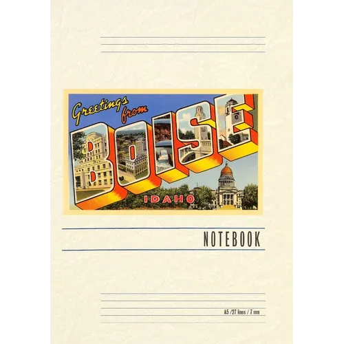 Introducing the Vintage Notebook: Greetings from Boise, a delightful companion for all your writing endeavors. Featuring 150 lined pages, immerse yourself in the charm of a classic vintage travel postcard illustration adorning its cover. With its full-color decorative vintage art and versatile functionality, this notebook is an ideal companion for journaling, planning trips, tackling writing projects, organizing to-do lists, or simply capturing thoughts on any occasion. Found Image Press Vintage Journals take you on a nostalgic journey, featuring carefully curated vintage art that celebrates your favorite places, hobbies, and interests. The front cover showcases a captivating classic piece of art sourced from our vast collection of over 60,000 pictures, meticulously selected to transport you to a bygone era. Immerse yourself in the allure of the past and thoughtfully crafted to inspire and accompany your creative ventures. Details: A5 5.8 x 8.2 inches; 150 lined opaque pages; Soft matte finish; Soft matte finish