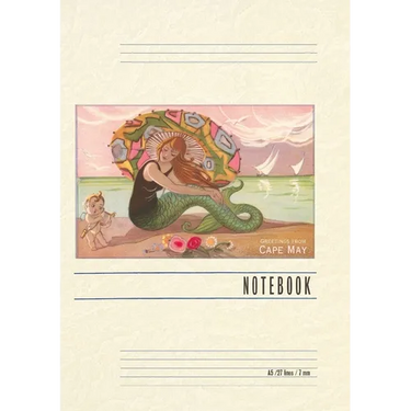 Introducing the Vintage Notebook: Greetings from Cape May, Mermaid with Cherub, a delightful companion for all your writing endeavors. Featuring 150 lined pages, immerse yourself in the charm of a classic vintage travel postcard illustration adorning its cover. With its full-color decorative vintage art and versatile functionality, this notebook is an ideal companion for journaling, planning trips, tackling writing projects, organizing to-do lists, or simply capturing thoughts on any occasion. Found Image Press Vintage Journals take you on a nostalgic journey, featuring carefully curated vintage art that celebrates your favorite places, hobbies, and interests. The front cover showcases a captivating classic piece of art sourced from our vast collection of over 60,000 pictures, meticulously selected to transport you to a bygone era. Immerse yourself in the allure of the past and thoughtfully crafted to inspire and accompany your creative ventures. Details: A5 5.8 x 8.2 inches; 150 lined opaque pages; Soft matte finish; Soft matte finish