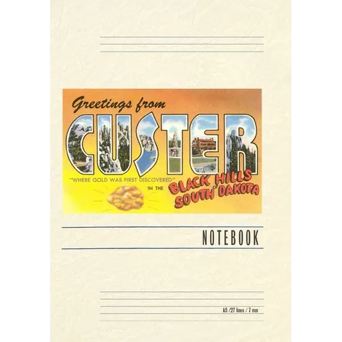 Introducing the Vintage Notebook: Greetings from Custer in the Black Hills, a delightful companion for all your writing endeavors. Featuring 150 lined pages, immerse yourself in the charm of a classic vintage travel postcard illustration adorning its cover. With its full-color decorative vintage art and versatile functionality, this notebook is an ideal companion for journaling, planning trips, tackling writing projects, organizing to-do lists, or simply capturing thoughts on any occasion. Found Image Press Vintage Journals take you on a nostalgic journey, featuring carefully curated vintage art that celebrates your favorite places, hobbies, and interests. The front cover showcases a captivating classic piece of art sourced from our vast collection of over 60,000 pictures, meticulously selected to transport you to a bygone era. Immerse yourself in the allure of the past and thoughtfully crafted to inspire and accompany your creative ventures. Details: A5 5.8 x 8.2 inches; 150 lined opaque pages; Soft matte finish; Soft matte finish