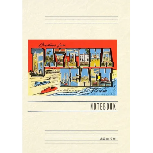 Introducing the Vintage Notebook: Greetings from Daytona Beach, Florida, a delightful companion for all your writing endeavors. Featuring 150 lined pages, immerse yourself in the charm of a classic vintage travel postcard illustration adorning its cover. With its full-color decorative vintage art and versatile functionality, this notebook is an ideal companion for journaling, planning trips, tackling writing projects, organizing to-do lists, or simply capturing thoughts on any occasion. Found Image Press Vintage Journals take you on a nostalgic journey, featuring carefully curated vintage art that celebrates your favorite places, hobbies, and interests. The front cover showcases a captivating classic piece of art sourced from our vast collection of over 60,000 pictures, meticulously selected to transport you to a bygone era. Immerse yourself in the allure of the past and thoughtfully crafted to inspire and accompany your creative ventures. Details: A5 5.8 x 8.2 inches; 150 lined opaque pages; Soft matte finish; Soft matte finish