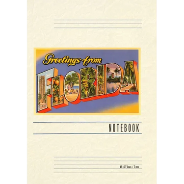 Introducing the Vintage Notebook: Greetings from Florida, a delightful companion for all your writing endeavors. Featuring 150 lined pages, immerse yourself in the charm of a classic vintage travel postcard illustration adorning its cover. With its full-color decorative vintage art and versatile functionality, this notebook is an ideal companion for journaling, planning trips, tackling writing projects, organizing to-do lists, or simply capturing thoughts on any occasion. Found Image Press Vintage Journals take you on a nostalgic journey, featuring carefully curated vintage art that celebrates your favorite places, hobbies, and interests. The front cover showcases a captivating classic piece of art sourced from our vast collection of over 60,000 pictures, meticulously selected to transport you to a bygone era. Immerse yourself in the allure of the past and thoughtfully crafted to inspire and accompany your creative ventures. Details: A5 5.8 x 8.2 inches; 150 lined opaque pages; Soft matte finish; Soft matte finish