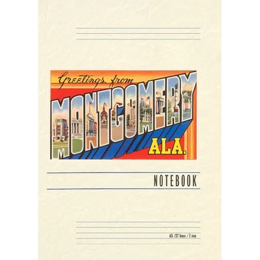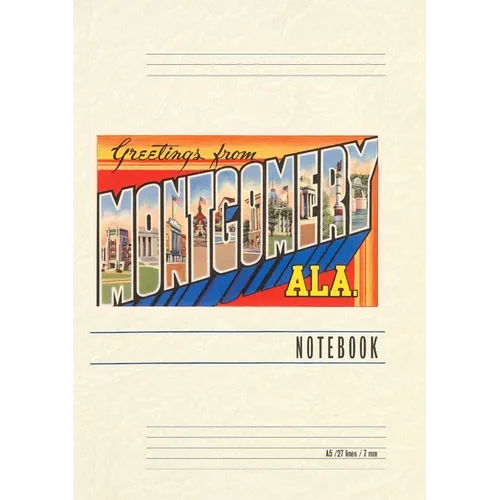 Introducing the Vintage Notebook: Greetings from Montgomery, a delightful companion for all your writing endeavors. Featuring 150 lined pages, immerse yourself in the charm of a classic vintage travel postcard illustration adorning its cover. With its full-color decorative vintage art and versatile functionality, this notebook is an ideal companion for journaling, planning trips, tackling writing projects, organizing to-do lists, or simply capturing thoughts on any occasion. Found Image Press Vintage Journals take you on a nostalgic journey, featuring carefully curated vintage art that celebrates your favorite places, hobbies, and interests. The front cover showcases a captivating classic piece of art sourced from our vast collection of over 60,000 pictures, meticulously selected to transport you to a bygone era. Immerse yourself in the allure of the past and thoughtfully crafted to inspire and accompany your creative ventures. Details: A5 5.8 x 8.2 inches; 150 lined opaque pages; Soft matte finish; Soft matte finish